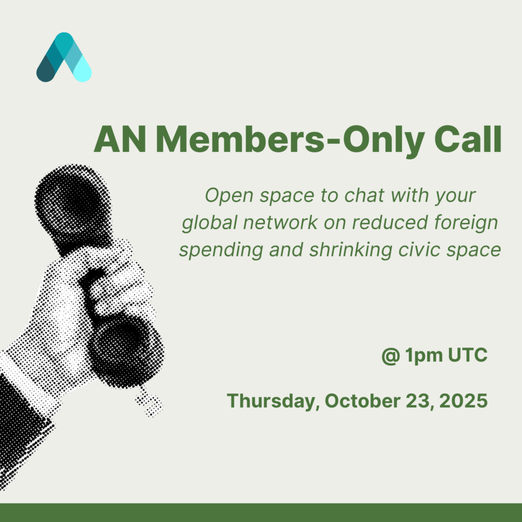 - Our next Members-Only Call: Reduced Foreign Spending is on Thursday, October 23 at 1pm UTC. Join your fellow AN Members for an open space to chat about reduce foreign spending, shrinking civic space, and recent and real impacts.